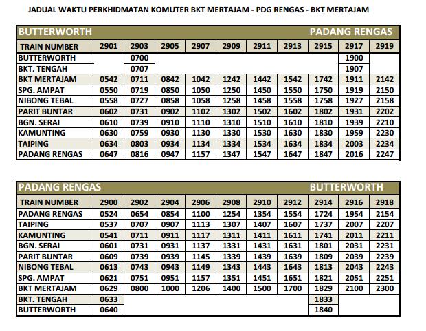 Jadual Perjalanan Komuter Terkini Kamunting Butterworth Padang