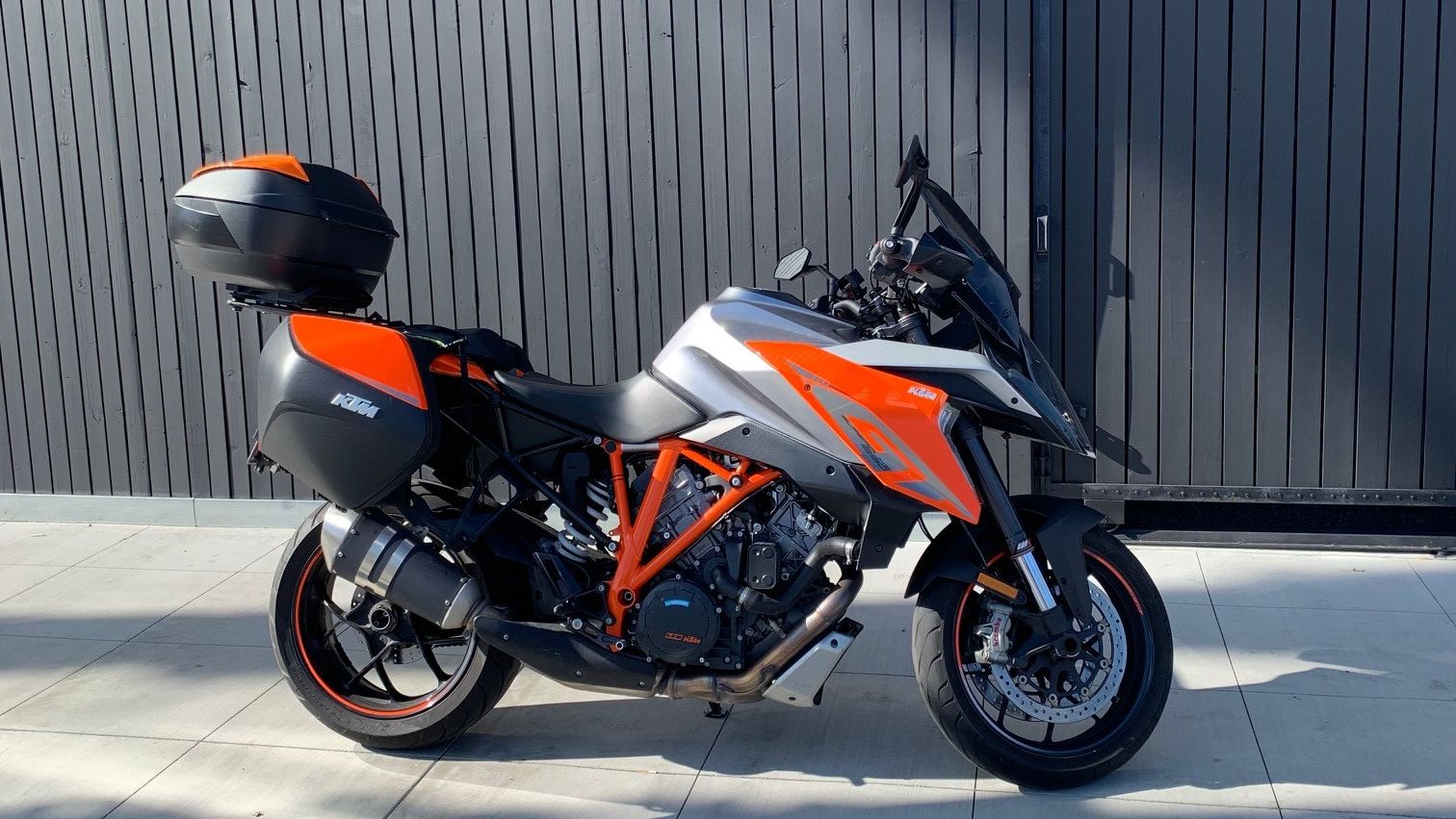 Ktm 1290 super duke gt 2016. True it doesnt seem that way at first. A special version of the super duke r this bike is a mean sport tourer. The new in 2016 super duke gt sports the same 1290 cc 173 horsepower plant and much the same chassis as the rest of the family but the factory boosted the tourability with a set of hard side.