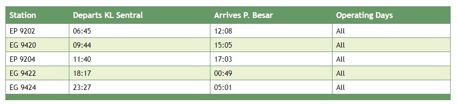 Ktm Timetable Electric Train Service Ets Timetable Time Schedule In Malaysia 2019 11 27